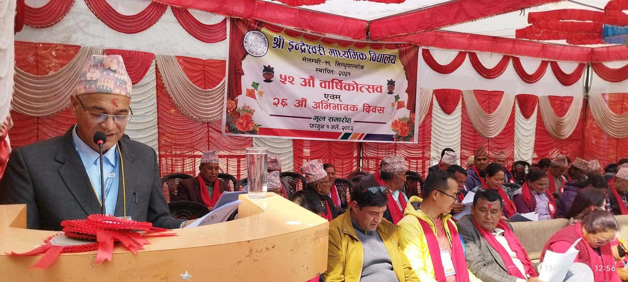 इन्द्रेश्वरी माध्यमिक विद्यालय मेलम्चीको ५२ औँ वार्षिकोत्सव तथा २६ औं अभिभावक भेला सम्पन्न भएको छ । कार्यक्रम उद्घाटनमा मेलम्ची नगरपालिकाका प्रमुख आइतमान तामाङ , उपप्रमुख उमा प्रधान र पूर्वराज्यमन्त्री इन्द्रमाया गुरुङ लगायतको उपास्थिति रहेको थियो ।