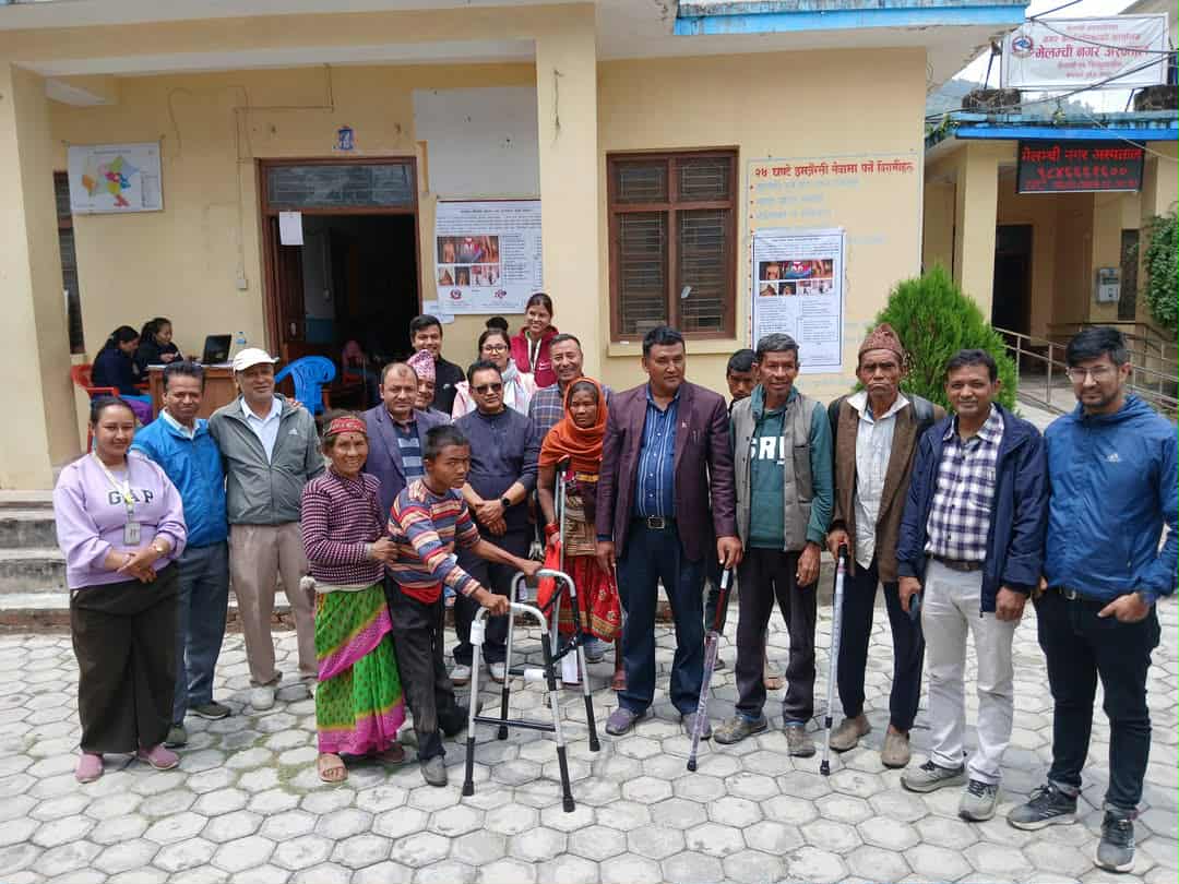 मेलम्ची, वैशाख १८ — मेलम्ची नगरपालिका र बनेपास्थित अपाङ्ग बाल अस्पताल तथा पुनर्स्थापना केन्द्र (HRDC) को संयुक्त लागत साझेदारीमा मेलम्ची नगरपालिका वडा नं ११ स्थित नगर अस्पतालमा अपाङ्गता भएका व्यक्तिहरूका लागि विशेष स्वास्थ्य शिविर सम्पन्न गरिएको छ।